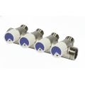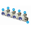 Il collettore idraulico a 4 vie con rubinetti incorporati è progettato per garantire una distribuzione efficiente e controllata dei flussi idrici nei moderni impianti termoidraulici. Ogni uscita da 1/2 pollice permette la gestione indipendente delle linee idrauliche, offrendo così una manutenzione semplificata e il controllo immediato di ogni singolo circuito.