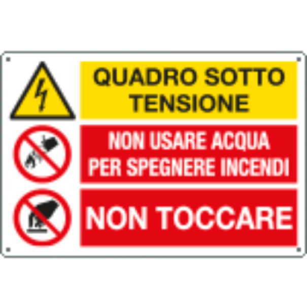 Cartello multisimbolo Impianto elettrico sotto tensione 300x200 alluminio E3521 Cartelli Segnalatori