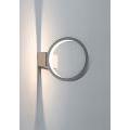 La luce indiretta è emessa dalla superficie interna di un anello orientabile (max 350°) applicato su una struttura in pressofusione di alluminio, entrambi verniciate a polveri nei colori bianco e nero.