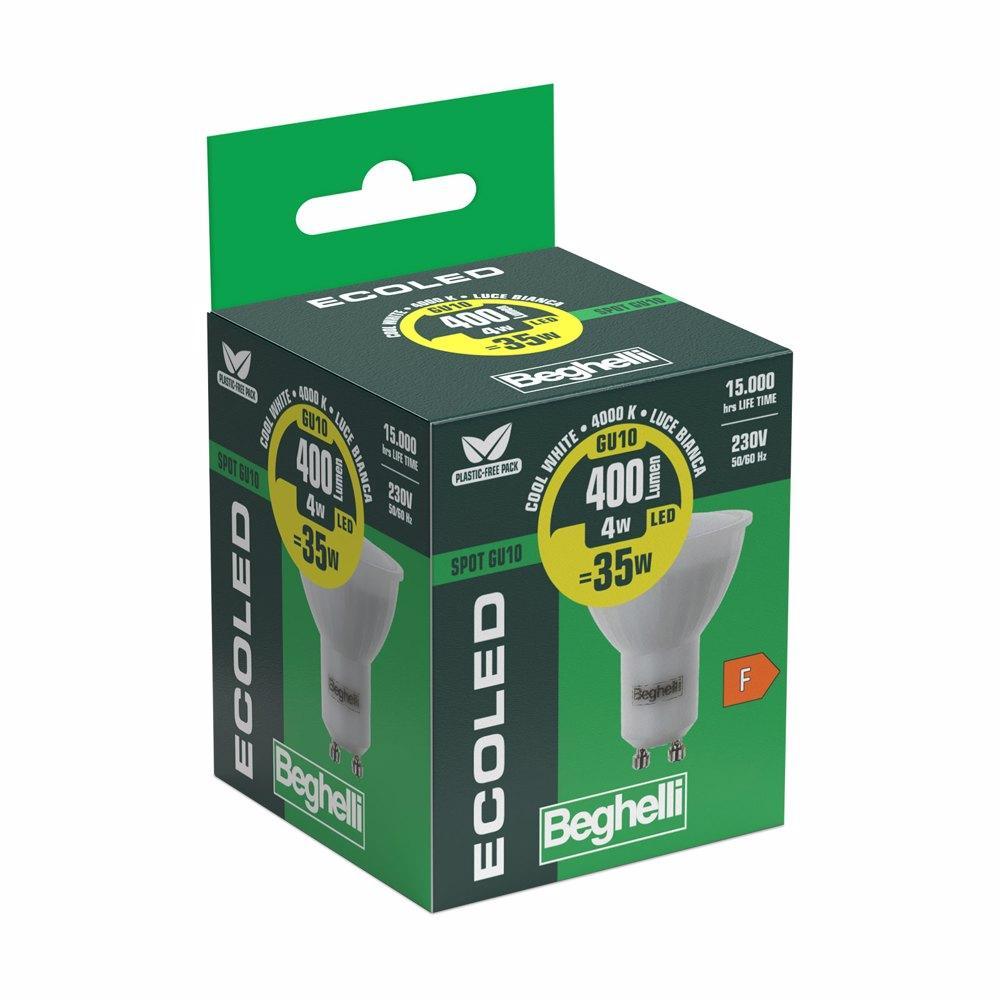 Lampadina LED 4W 95° 230V GU10 4000K luce naturale faretto Beghelli 56024