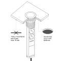 Installare la multipresa praticando un foro da 60 mm sul piano di lavoro. Collegare la spina alla rete elettrica e utilizzare le prese e le porte USB per l’alimentazione e la ricarica dei dispositivi compatibili.