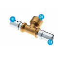 Questo raccordo a T filettato femmina in ottone è progettato specificamente per impianti di distribuzione gas metano o GPL, utilizzando sistemi a tubazione multistrato PEX/AL/PEX. L'attacco filettato femmina da 3/4 pollice, combinato con diametri 20x3/4x20 mm, consente una perfetta connessione e suddivisione delle linee gas, ottimizzando la gestione degli impianti.
