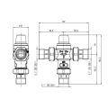 Struttura realizzata con materiali di alta qualità: il corpo è in lega antidezincificazione cromata per durabilità, l'otturatore in PSU conferisce stabilità agli sbalzi termici, mentre le molle in acciaio inox e le guarnizioni in EPDM garantiscono prestazioni costanti. Il range di regolazione della temperatura è ampio, tra 35 e 55°C, con una precisione di ±2°C. La gestione passa per un sensore integrato che elimina la necessità di sonde o alimentazione esterna, riducendo i costi di installazione e la necessità di manutenzione nel tempo.